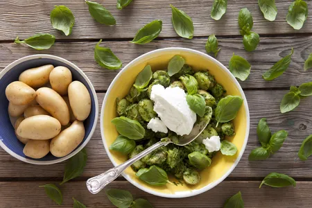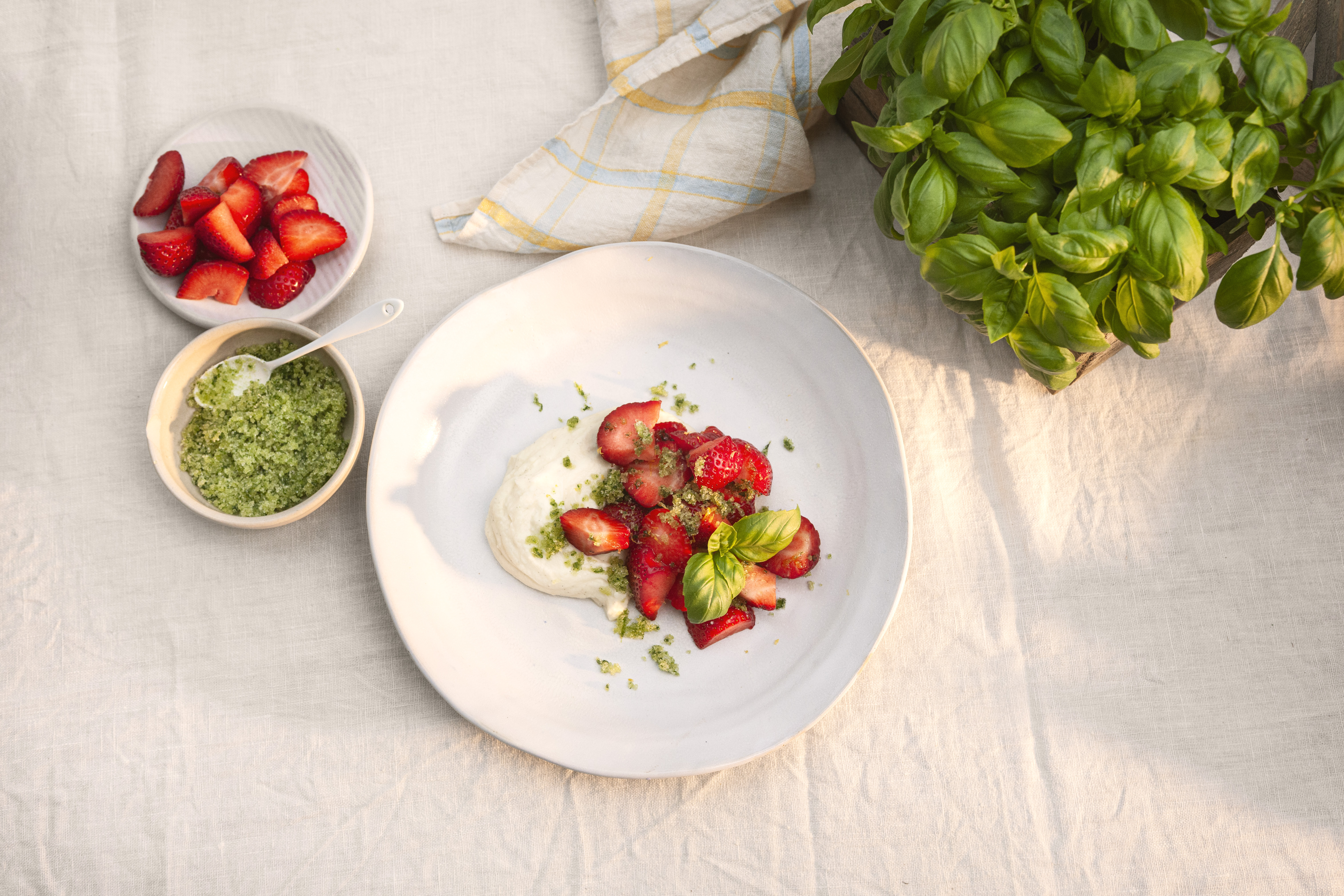 Färska jordgubbar med mascarponegrädde och basilikasocker